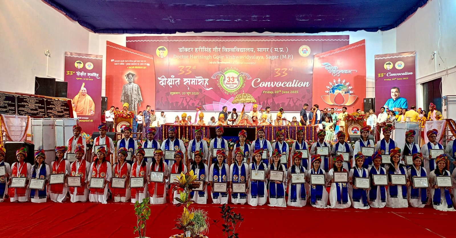 डॉक्टर हरीसिंह गौर केंद्रीय विश्वविद्यालय, सागर का 33वां दीक्षांत समारोह गौर प्रांगण में अपरान्ह 12 बजे से आयोजित किया गया। कार्यक्रम में मुख्य अतिथि श्री नितिन गडकरी, केंद्रीय सड़क परिवहन एवं राजमार्ग मंत्री, भारत सरकार, विशिष्ट अतिथि के रूप में मध्य प्रदेश के उपमुख्य मंत्री श्री राजेन्द्र शुक्ल, गौर अतिथि के रूप में मध्य प्रदेश के खाद्य, नागरिक आपूर्ति एवं उपभोक्ता संरक्षण मंत्री श्री गोविन्द सिंह राजपूत एवं सागर लोक सभा क्षेत्र की सांसद डॉ. लता वानखेड़े समारोह में सम्मिलित हुए. समारोह की अध्यक्षता विश्वविद्यालय के कुलाधिपति कन्हैया लाल बेरवाल ने की. विश्वविद्यालय की कुलपति प्रो. नीलिमा गुप्ता प्रतिवेदन प्रस्तुत किया।
