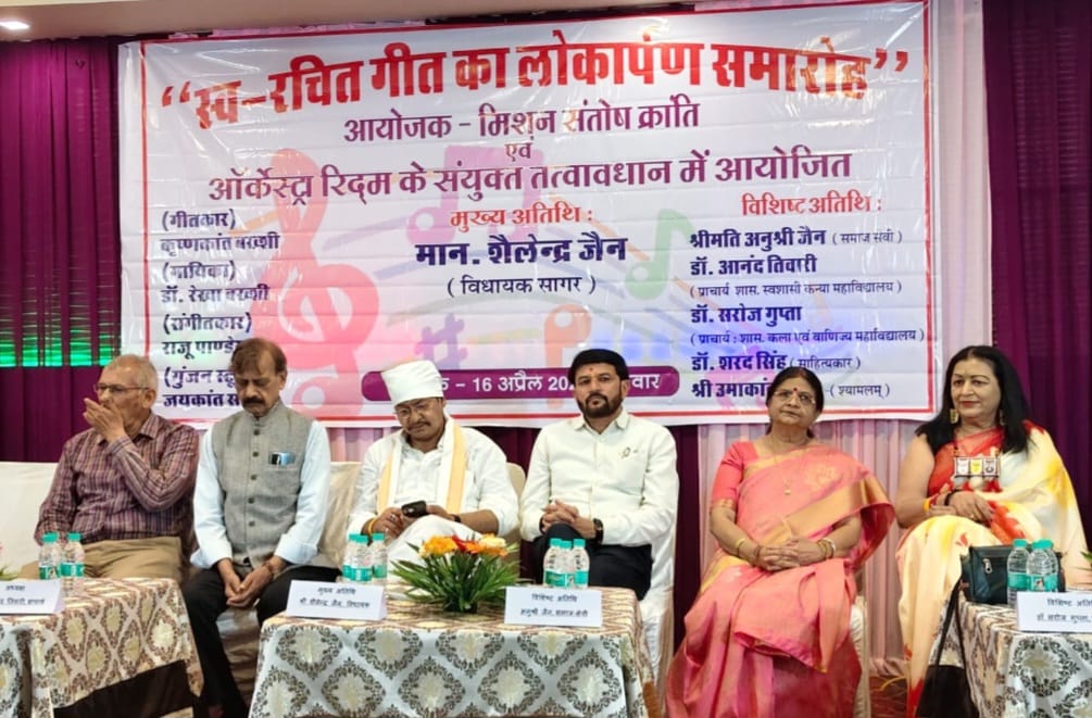 यह बात कार्यक्रम के मुख्य अतिथि विधायक शैलेंद्र जैन ने डॉक्टर रेखा बक्शी द्वारा गाए गीत “आईए सभी भारतवासी आईए ….भ्रष्टाचार से मुक्त इसे बनाआई…आईए सभी भारतवासी आईए ….विश्व गुरु भारत को अब बनाआई…। सिविल लाइन स्थित होटल वरदान में हुए इस कार्यक्रम में गीत का विमोचन करते हुए कही।