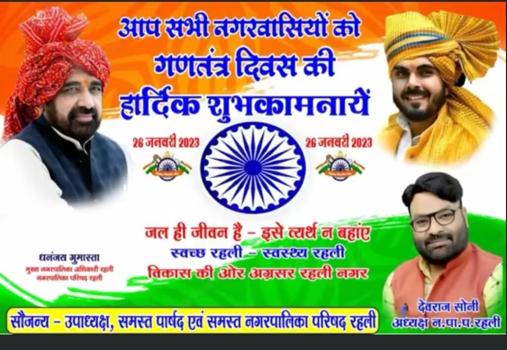 गणतंत्र दिवस पर शहीद स्मारक पर नगरपालिका अध्यक्ष देवराज सोनी सबसे पहले तिरंगा फहराएंगे इसके बाद जय स्तंभ और नगरपालिका परिसर में तिरंगा फहराया जाएगा।
