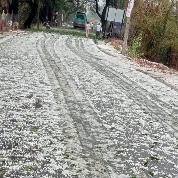 यहां की सड़के कश्मीर को सड़को की तरह दिखाई दी।वही खेतों में खड़ी गेहूं, चना और सरसों की फसलें खराब हो गई हैं. इसके अलावा, आम के पेड़ों पर जो बौर आया था, वह भी गिर गया है. इससे किसान बहुत दुखी हैं।