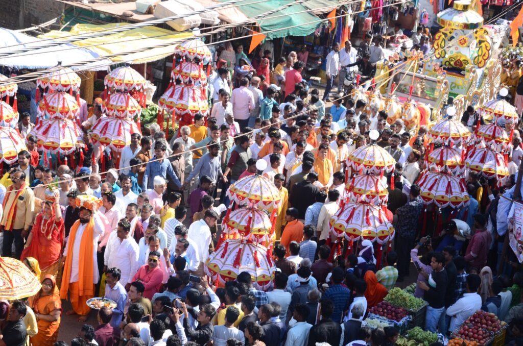 एक किमी लंबी शोभायात्रा का जगह जगह हुआ स्वागत, हाथी,घोड़े,झांकियां,अखाड़े,कीर्तन मंडली,डीजे,बैंड पार्टी के साथ भव्य कलश यात्रा में शामिल हुए हजारों श्रद्धालु