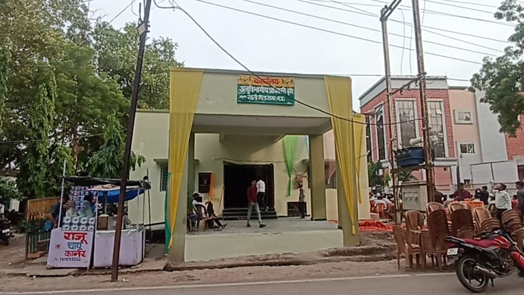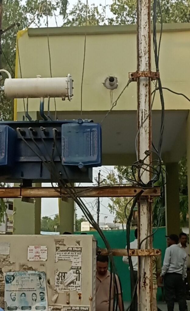 भवन के बाजू में ही लगी 33 केवही की विद्युत डीपी के ऊपर ही भवन की छत से वारिश का पानी बाहर करने वाला पाइप लगा दिया।अब जैसे ही बारिश का पानी पाइप से सीधे डीपी के ऊपर गिरेगा तो बड़ा हादसा होने की संभावना हे, डीपी के तार जमीन छू रहे है।