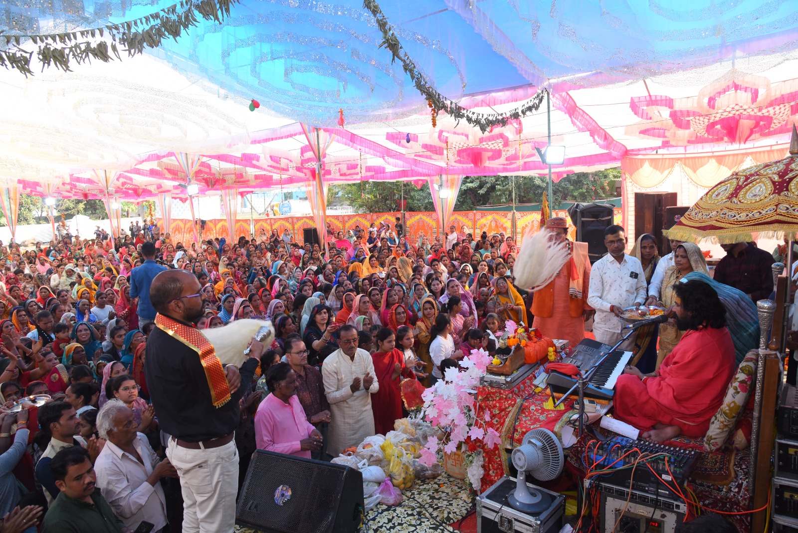 कथा के सफल समापन पर, विधि-विधान से आरती संपन्न हुई। आरती के पश्चात विशाल भंडारा प्रसाद का वितरण किया गया, जिसमें बड़ी संख्या में भक्तों ने प्रसाद ग्रहण किया।