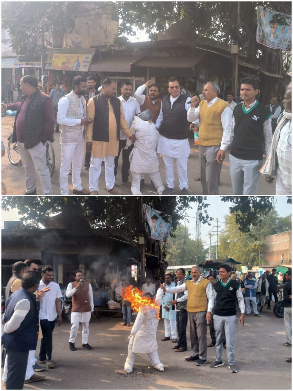 पुतला दहन कार्यक्रम के दौरान मुख्य रूप से निम्नलिखित कांग्रेस पदाधिकारी एवं कार्यकर्ता उपस्थित रहे: