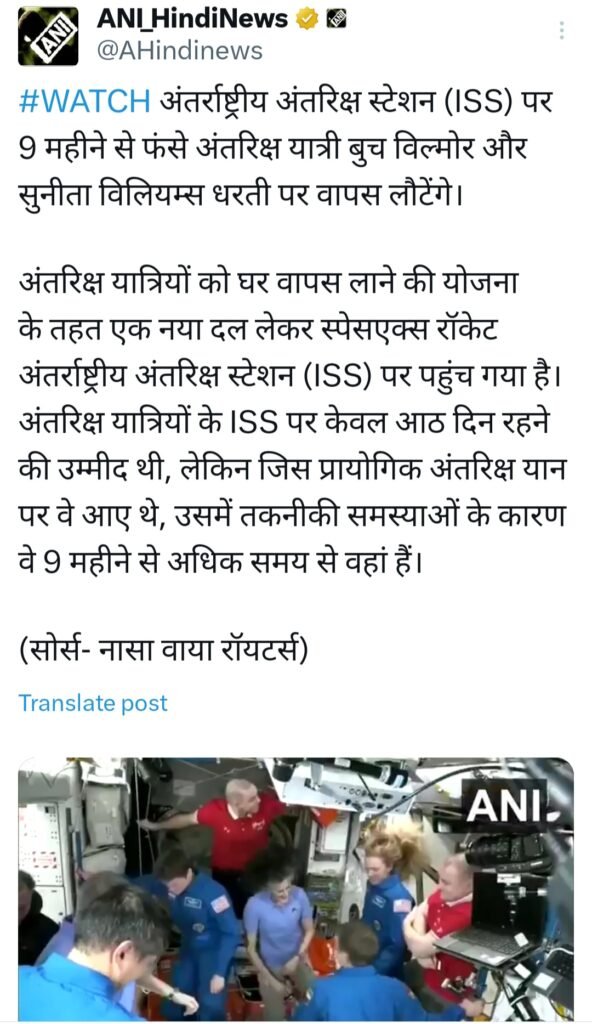 अंतर्राष्ट्रीय अंतरिक्ष स्टेशन पर 9 महीने से फंसे अंतरिक्ष यात्री बुच विल्मोर और सुनीता विलियम्स धरती पर वापस लौटेंगे।