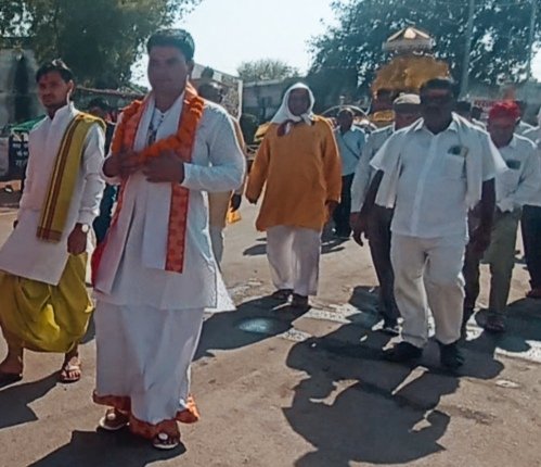 दूसरी बात अब तक देखते आए कि भागवत कथाओं में निकलने वाली शोभायात्रा में भगवान पैदल चल रहे भक्तों के हाथों में और कथा प्रवक्ता रथ पर सवार होकर निकलते थे।आज नगर के वार्ड 03 में यादव परिवार द्वारा आयोजित कथा की शोभायात्रा में पहली बार भगवान रथ पर सवार थे और कथा प्रवक्ता बालशुक आशीर्वाद जी महराज जी पैदल नंगे पांव चल रहे थे। अब लोग ही निर्णय कीजिए कितना धर्ममय कार्य हुआ।इसके लिए कथा व्यास आशीर्वाद महराज जी को भी साधुवाद…….