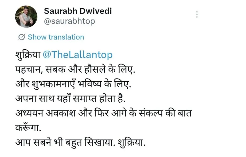 - “लल्लनटॉप से सौरभ द्विवेदी की विदाई: क्या अब शुरू होगा हिंदी पत्रकारिता का ‘नया अध्याय’?”