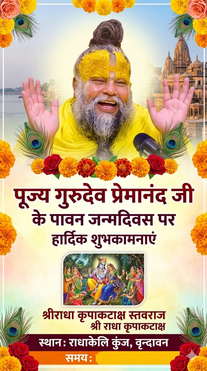 आज का दिन उस असीम कृपा का उत्सव है, जिसने वृंदावन की गलियों से उठकर करोड़ों हृदय में ‘राधा नाम’ की लौ जलाई है। पूज्य महाराज जी का जीवन इस बात का प्रमाण है कि यदि हृदय में अटूट विश्वास हो, तो शारीरिक व्याधियाँ भी भक्ति के मार्ग में बाधा नहीं बन सकतीं।